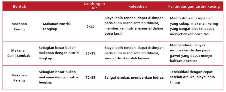 Makanan hewan peliharaan dapat dikategorikan berdasarkan kandungan kelembaban dan bentuknya: Makanan kering, Makanan semi-lembab, Makanan basah (makanan kaleng, kantong makanan). Berdasarkan fungsinya, makanan hewan peliharaan dibagi menjadi: Makanan dengan nutrisi lengkap, Makanan tambahan, Makanan fungsional lainnya. Makanan hewan peliharaan harus memenuhi standar gizi untuk berbagai tahap kehidupan sembari memberikan hidrasi. Makanan yang memenuhi kriteria ini cocok sebagai makanan pokok sehari-hari..png)