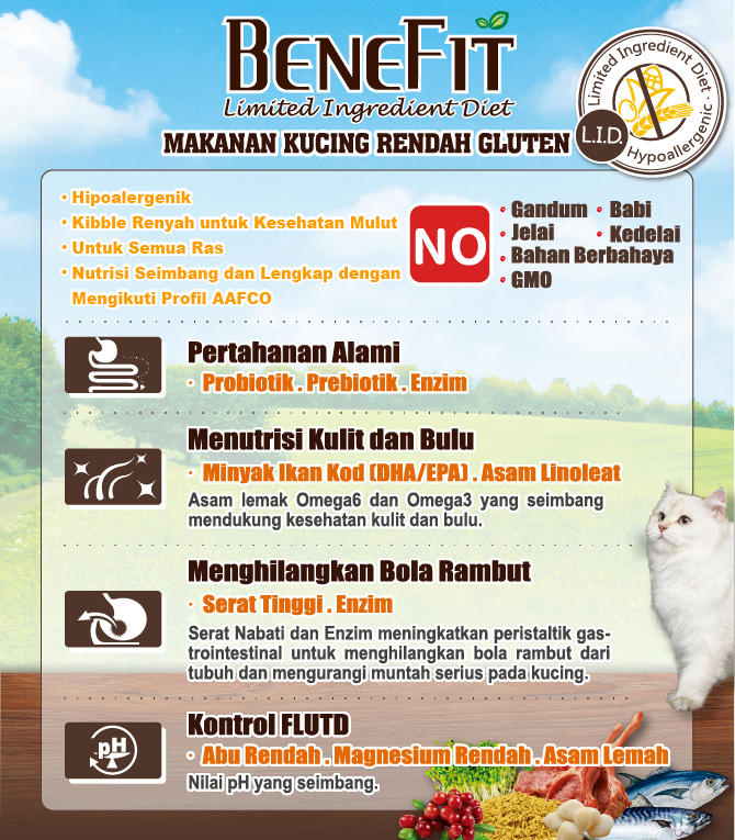 • Makanan Kucing Rendah Gluten