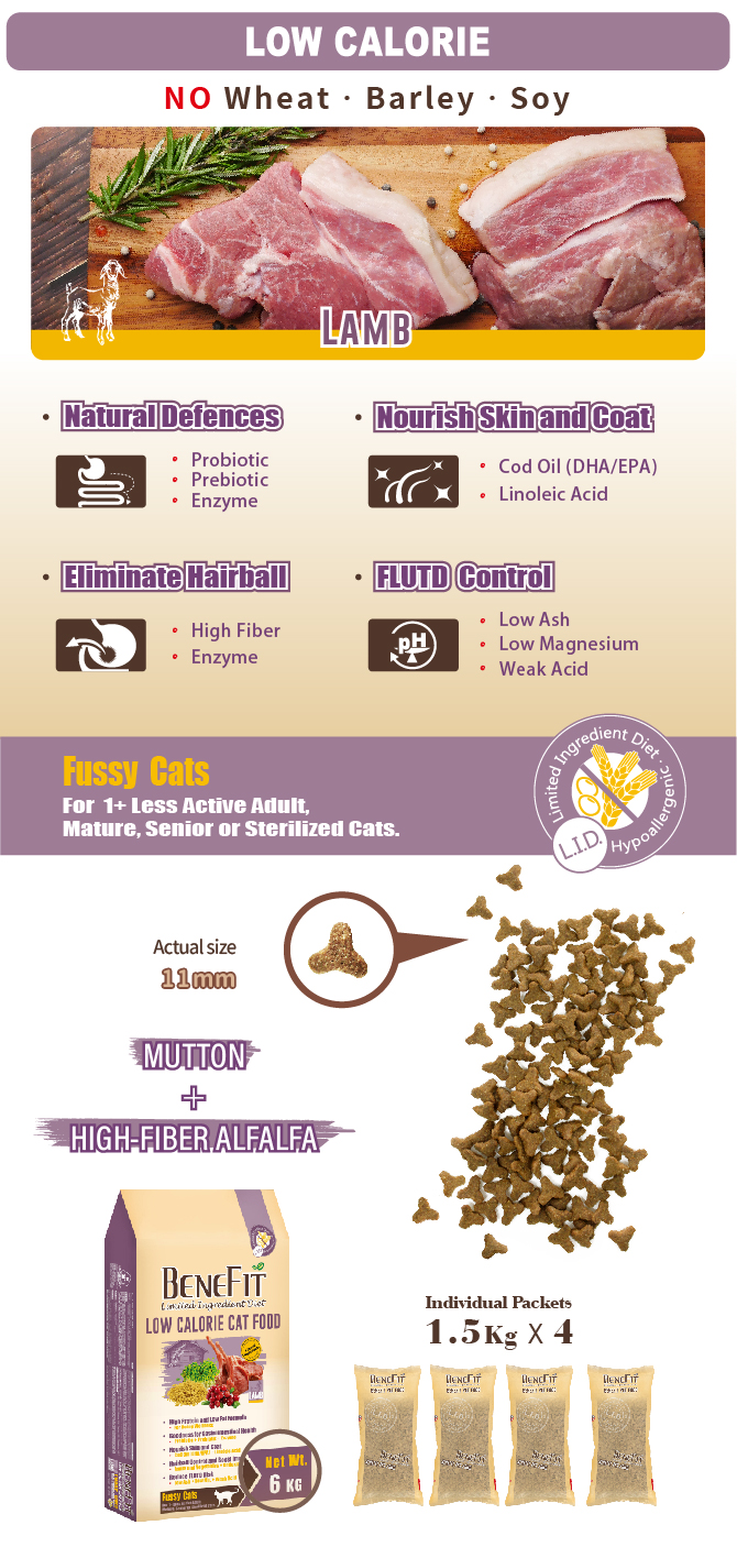 Tepung Daging Ayam (Sumber Kondroitin), Nasi Merah, Tepung Daging Domba (Sumber Kondroitin), Gluten Jagung (Non-GMO), Serat dan Sayuran (Alfalfa/Bit/Biji Wijen/Apel/Cranberry), Lemak Unggas (Asam Linoleat LA/ALA Sumber), Minyak Ikan Kod (Omega3/DHA/EPA Sumber), Protein Terhidrolisis, Mineral Esensial (Kalsium, Fosfor, Kalium, Natrium, Zat Besi, Seng, Tembaga, Mangan, Selenium), Kalsium Laktat, Berbagai Vitamin (Koloni Klorida, Vitamin A, B1, B2, B3, B5, B6, B9, B12, C, E, D, H2), FOS, Ekstrak Yucca Schidigera, Bacillus Subtilis (Natto), Protease (Enzim), Taurin, Antioksidan Alami.